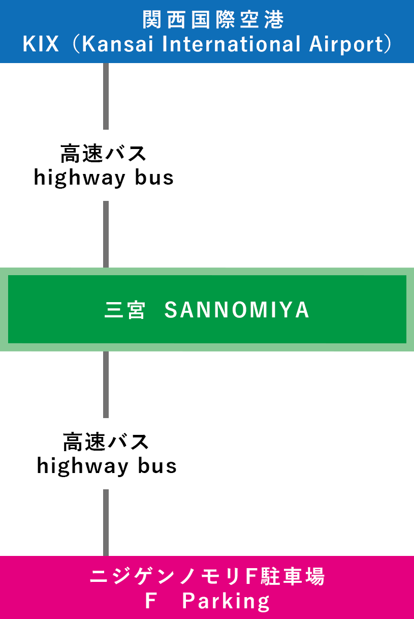 三宮からの高速バスでの行き方は以下の通りです。