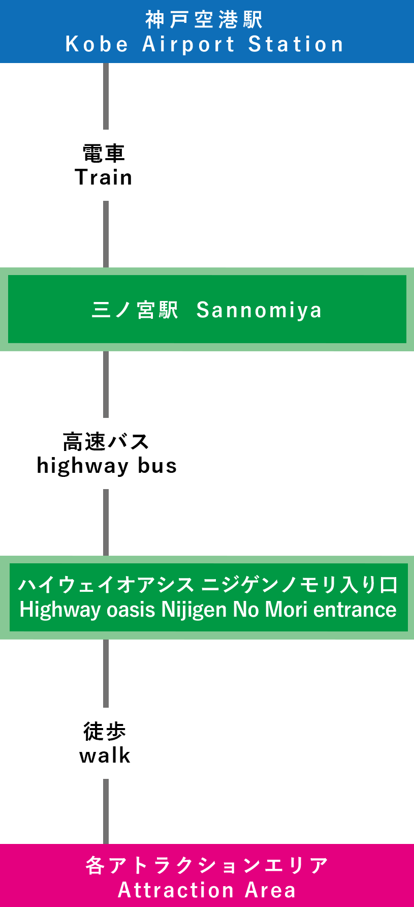 ①神戸空港-三宮-ニジゲンノモリ(1時間30分~)