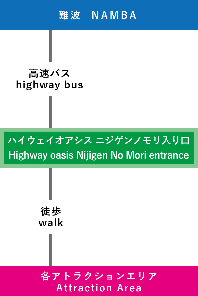 難波からの高速バスでの行き方は以下の通りです。