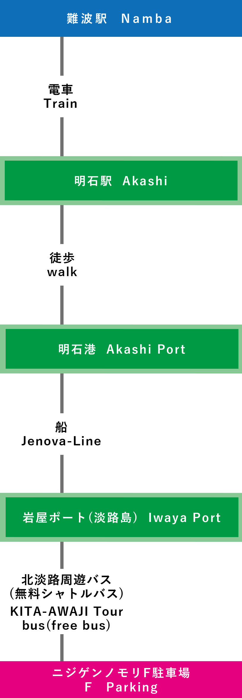 ⑤関西国際空港-難波(大阪)-淡路IC-ニジゲンノモリ(3時間15分~)
