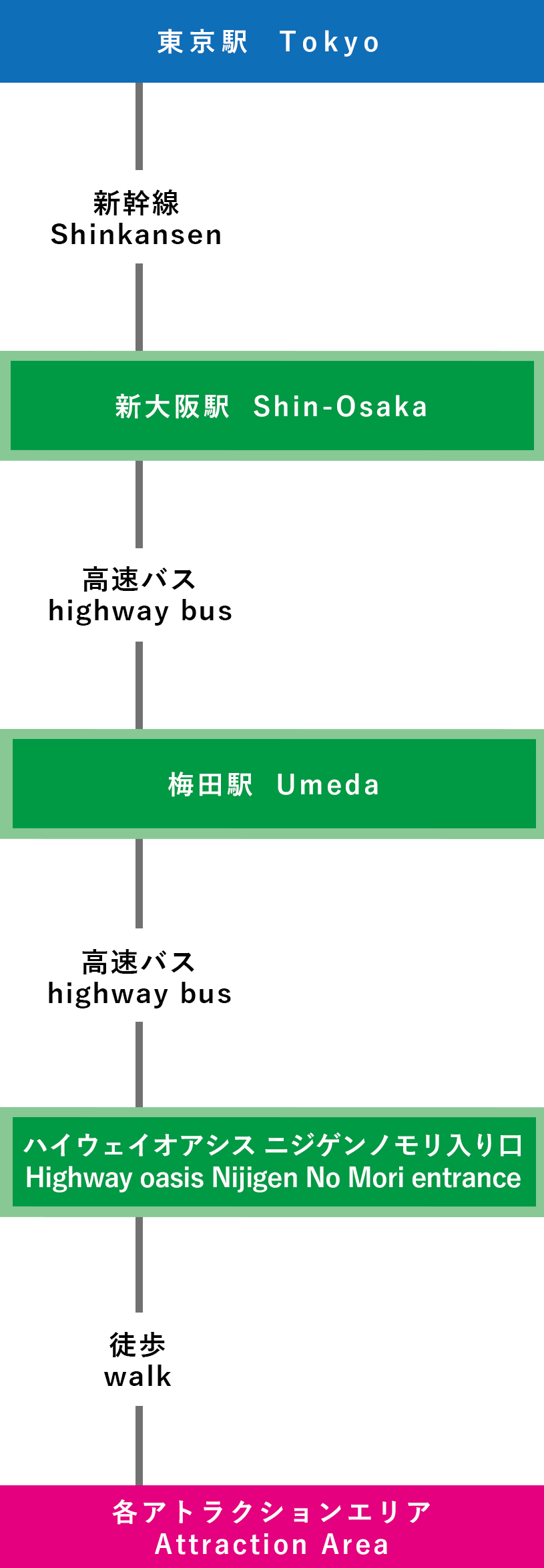 ①東京-梅田(大阪)-ニジゲンノモリ