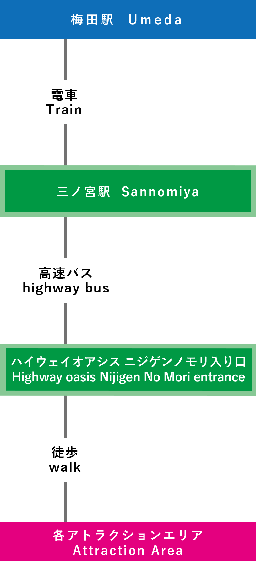 ①梅田-三宮-ニジゲンノモリ(1時間30分~)