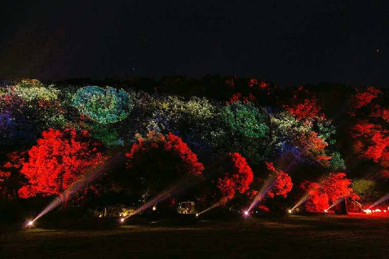 - 私はこれまで、作品を通じて”その場所でやる意味や、その空間だからこそ引き出せる魅⼒”を創り出することを⼤切にしてきました。新しいテクノロジーや古くからあるテクノロジー、デジタルなものからアナログなものまで、様々なものを融合し、体験を表現してきました。「ナイトウォーク⽕の⿃」では、淡路島の⾃然豊かな夜の森を歩き、夜の⾃然をより満喫してもらう中で、⼿塚治⾍⽒原作の「⽕の⿃」の神秘さを体験できるような演出をしています。その世界観を光と⾳と映像、テクノロジーの⼒を使って、本来の淡路島の持つ森の魅⼒を引き出し、参加者が⼼ゆくまで満喫してもらえたらと思っています。 岩、⽊、橋等、兵庫県⽴淡路島公園にある、ありとあらゆる⾃然に幻想的な映像投影し、レーザー、スモーク、⾵、⽕など、様々な仕掛けをテクノロジーで制御して融合しているところも⾒所です。 また、今回の演出をもって、淡路島が持つ⽇本を代表する豊かな⾃然、⽇本が世界に誇る⽂化の⼀つである「アニメ」が新しい形で伝わって、何か新しい盛り上がりが⽣まれたら幸いです。
